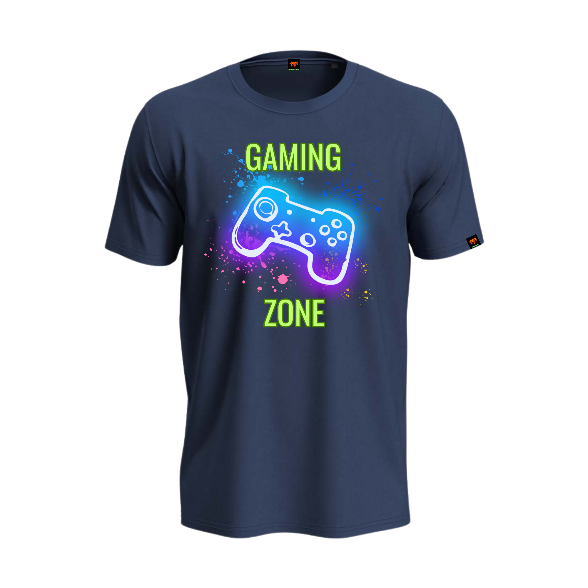 Ten wyjątkowy T-shirt gamingowy przyciąga wzrok neonowym nadrukiem kontrolera i hasłem „Gaming Zone”, które doskonale oddaje klimat gamingu.